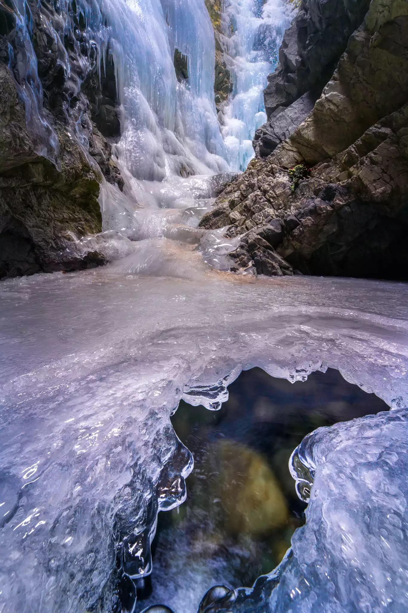 The next day we hiked up to Zapata Falls. This is a fun winter hike. In winter, spikes or traction devices on your shoes are essential for navigating the creek.